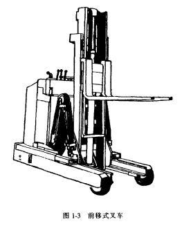 前移式叉車也有兩條前伸的支腿,但是前輪較大,支腿較高。作業(yè)時支腿不能插入貨物底部,而門架可以帶著整個起升機(jī)構(gòu)沿支腿內(nèi)側(cè)的軌道前移。叉取貨物后稍微起升一個高度即可縮冋,保證叉車運(yùn)行時的穩(wěn)定。前移式叉車一般用電動機(jī)驅(qū)動,額定起重量在2t以下