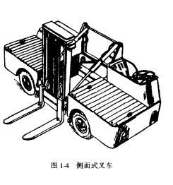 側(cè)面式叉午的門架、起升機(jī)柯及貨叉位于叉車中部,并可沿橫向?qū)к壱苿?。貨叉在?cè)面叉。