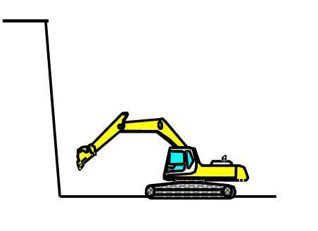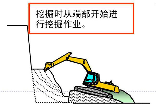 (1)挖掘機(jī)根部下方做挖掘作業(yè)的時候,盡量將車體靠近石堆邊。