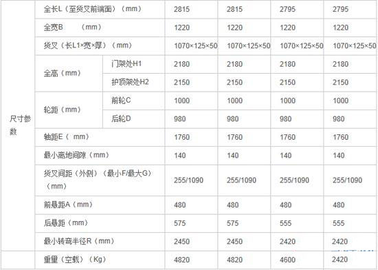 廈工叉車相關(guān)性能參數(shù)