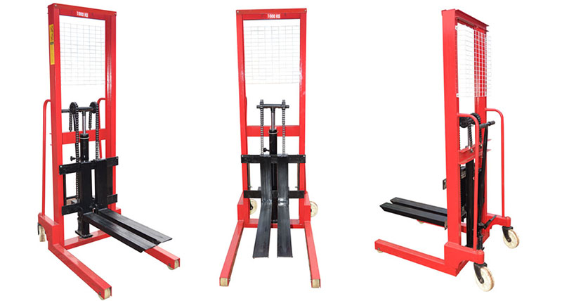 手動(dòng)堆高車又稱手動(dòng)叉車,是在手動(dòng)搬運(yùn)車的結(jié)構(gòu)上多了門架,可以將貨物起升、下降,貨叉提升高度一般在4.5米內(nèi),最合適對托盤貨物進(jìn)行裝卸、堆高和短距離運(yùn)輸,結(jié)構(gòu)簡單,操作容易,很受高架倉庫或者車間裝卸堆垛場所需要的。手動(dòng)搬運(yùn)車需要人力液壓上下卸貨,行走也需要人力推動(dòng)的。如下圖: