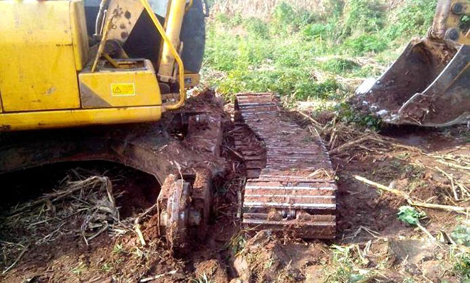 3. 查看挖掘機履帶內(nèi)是否夾雜泥土沙石,并及時清理。