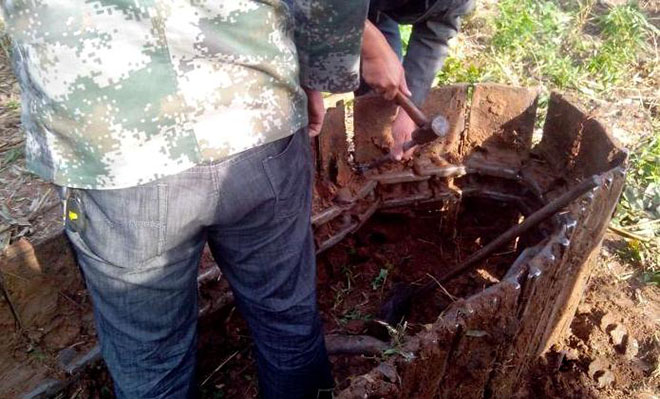 將鏈條活銷關節(jié)轉至兩端中間高度,將其敲出,這時履帶板可以擺放平整,呈一字形,挖機機單邊行走至履帶正上方。這時候我們需要一根鐵棍“引導”履帶板走向“正軌”。從驅(qū)動輪開始裝配,用鐵棍放在履帶板下,撐起機器轉動履帶,這時還需要一個人在駕駛室操作行走,一邊提起履帶的同時轉動履帶前進,經(jīng)過上方的托輪,行走至導向輪位置,這時可在導向輪處放置一個物體,這時履帶兩邊進行對接,裝配上活銷軸即可。此方發(fā)同樣適用于橡膠履帶裝配,由于活銷老化,敲打有一定難度,甚至需要焊割設備才能裝配,故一般情況下不推薦此方法。