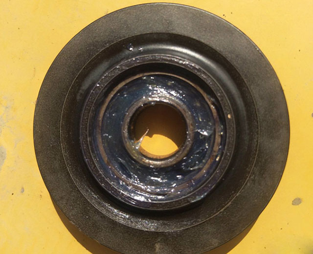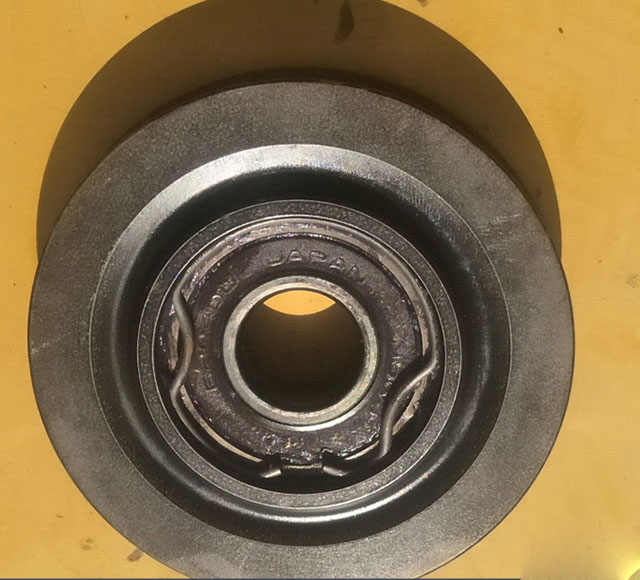 第二步:用手按住卡環(huán),用平頭螺絲刀把卡環(huán)一挑,挑掉卡環(huán)后就是軸承密封圈,時面的鋼珠在干磨。