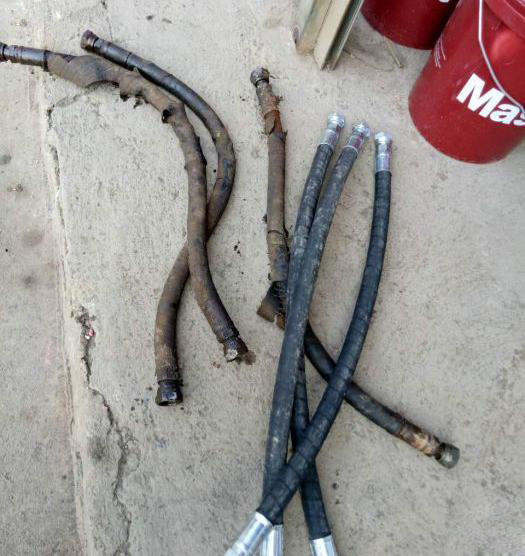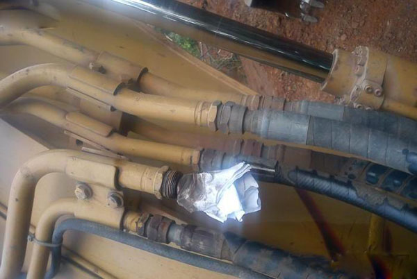 在有些挖掘機(jī)、裝載機(jī)的液壓系統(tǒng)中,同一油路的橡膠軟管其規(guī)格相同,但承受油壓不同。破裂的軟管大多是承受油壓較大的軟管。對(duì)破裂的膠管進(jìn)行簡(jiǎn)單的粘補(bǔ)或捆綁;將動(dòng)臂缸大腔和小腔的油管互換使用即可(即用未破裂的油管承受高壓,用已破損但經(jīng)過簡(jiǎn)單粘補(bǔ)或捆綁的油管承受低壓)。