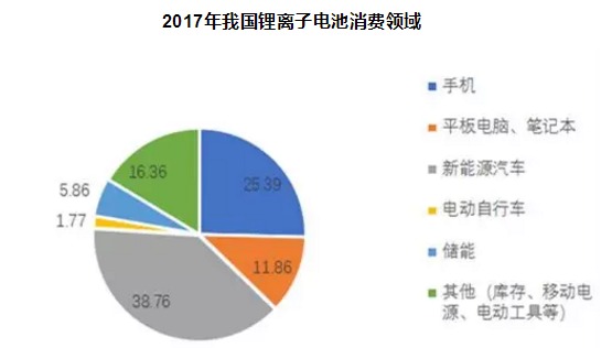 2017年我國鋰離子電池消費(fèi)領(lǐng)域