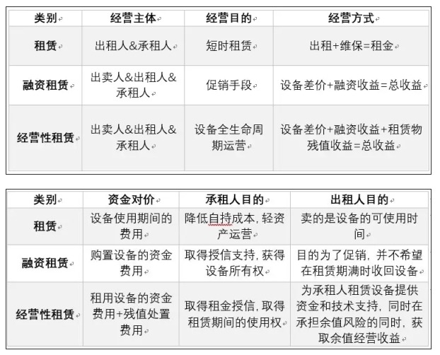 這里有必要區(qū)分下租賃、融資租賃、經(jīng)營(yíng)性租賃的區(qū)別: