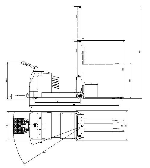 | Mast Type 門架類型 | Max.Fork height (貨叉舉升高度) | Mast Lowered (門架降低時(shí)高度) | Mast Extended (門架延伸時(shí)高度) | Free Lift (自由行程) |