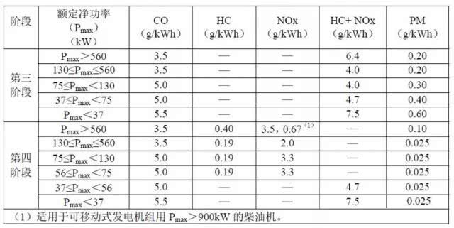 非道路移動機(jī)械國三及國四排放污染物限值對比
