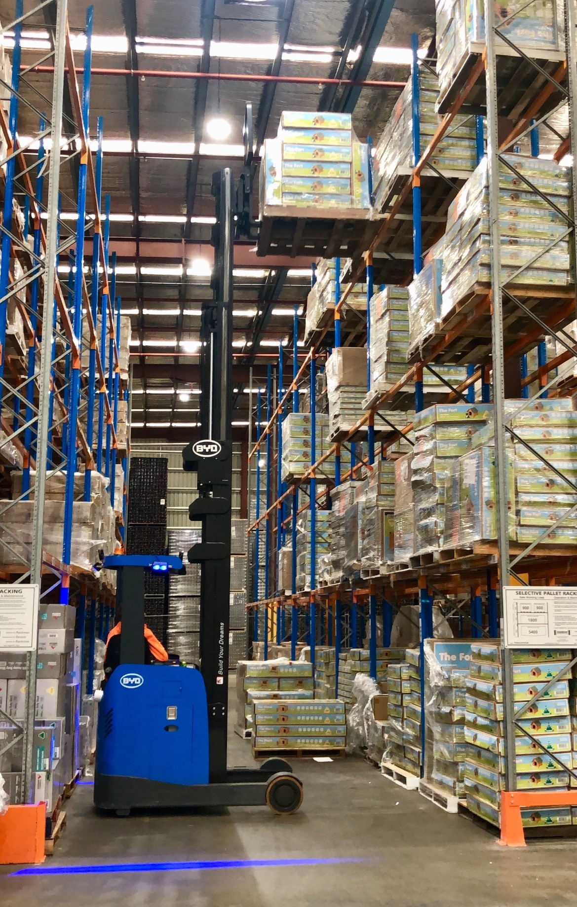在澳大利亞一家跨境物流企業(yè)整齊、寬敞的倉庫內(nèi),有一抹“藍”顯得格外耀眼,或疾馳,或???,或穿梭貨架間,在倉庫內(nèi)翩然起舞。而這抹“藍”專屬——比亞迪叉車。