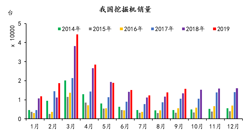 據(jù)中國工程機(jī)械工業(yè)協(xié)會統(tǒng)計,2019年9月納入統(tǒng)計的25家挖掘機(jī)制造企業(yè)共銷售各類挖掘機(jī)15799臺,同比增長17.8%。國內(nèi)市場銷量13182臺,同比增長12.5%。出口2617臺,同比增長54.9%。1-9月累計總銷量179195臺,同比增長14.7%;累計內(nèi)銷159810臺,同比增長12.2%;累計出口19385臺,同比增長39.9%。在國內(nèi)房地產(chǎn)和基建需求向好,環(huán)保要求日益嚴(yán)格的情況下,9月挖掘機(jī)內(nèi)銷保持著較高的增速,而出口端國內(nèi)企業(yè)的產(chǎn)品逐漸受到認(rèn)可,今年以來增速一直高于內(nèi)銷。內(nèi)銷市場分機(jī)型看,小挖增長幅度最大,同比漲幅達(dá)到15.8%,下游農(nóng)村水利、市政工程等需求韌性較強(qiáng)仍然是主要因素。