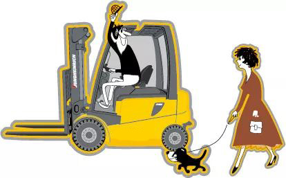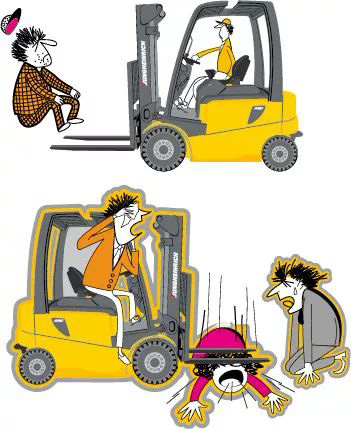 留意叉車周圍行人,注意不要撞傷他人。