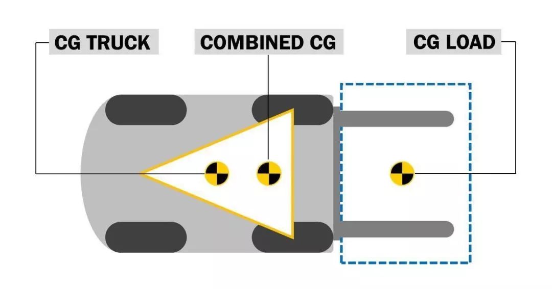 每一臺(tái)平衡重“叉醬”都有一個(gè)三點(diǎn)懸掛系統(tǒng),這也就意味著車輛是由三點(diǎn)支撐的,而叉車的自身重心(空載)和組合重心(負(fù)載)都分布在這個(gè)三角形之內(nèi),我們稱之為“穩(wěn)定三角”。