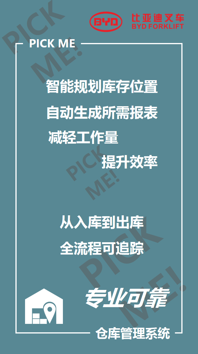 比亞迪叉車智能倉儲101來啦,你PICK哪個?_行業(yè)資訊_資訊動態(tài)_廈門永新昌機械設(shè)備有限公司