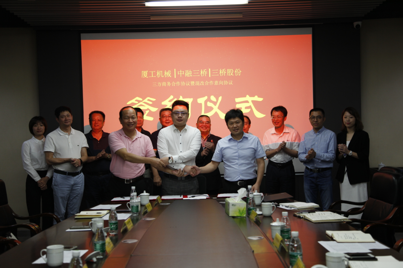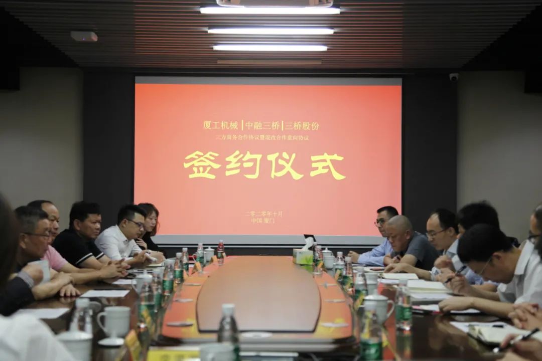福建省機械工業(yè)聯(lián)合會會長許振明;廈工股份公司總裁林春明、副總裁兼財務(wù)總監(jiān)李喜勇、總工程師黃鶴艇;中融三橋公司蔡報軍、董事長姜洋、總經(jīng)理吳繼成出席簽約儀式。