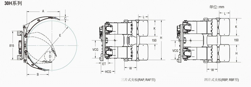 | Capacity 承載能力(kg) | Catalog Order NO 型號(hào) | Mounting Class 安裝等級(jí) | Roll Range 紙卷直徑 D-E(mm) | Long Arm Length 長(zhǎng)臂長(zhǎng)度 A(mm) | Short Arm Length 短臂長(zhǎng)度 B(mm) | Long Arm Thickness 長(zhǎng)臂厚度 C(mm) | Short Arm Type 短臂類(lèi)型 | Contact Pad Size Long Arm 長(zhǎng)臂夾板尺寸 K×L(mm) | Contact Pad Size Short Arm 短臂夾板尺寸 H×W(mm) | Vertical Ctr.of Gravity 垂直重心VCG | Weight 自重(kg) | Effective 失載距ET(mm) | Horizontal Center of Gravity 水平重心CGH(mm) |