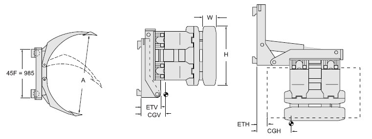 | Capacity 承載能力(kg) | Catalog Order NO 型號 | Mounting Class 安裝等級 | Roll Range紙卷直徑(mm) | Pad Size夾板尺寸HxW(mm) | Vertical Center of Gravity垂直重心CGV(mm) | Effective Thickness Verfical Rollposltion垂直失載距ETV(mm) | Effective Thickness Horizontal RollPostltion水平失載距ETH(mm) | Weight 自重(kg) | Effective 失載距ET(mm) | Horizontal Center of Gravity 水平重心CGH(mm) |