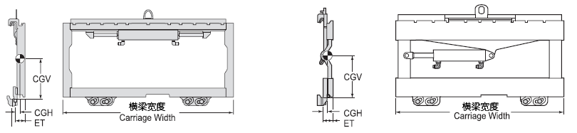 | Capacity 承載能力(kg) | Catalog Order NO 型號 | Mounting Class 安裝等級 | Load Center載荷中心(mm) | Minimum Truck Carriage Width叉車貨叉架寬度最小值(mm) | Carriage Width橫梁寬度(mm) | Vertical Center of Gravity垂直重心VCG(mm) | Weight 自重(kg) | Effective 失載距ET(mm) | Horizontal Center of Gravity 水平重心CGH(mm) |