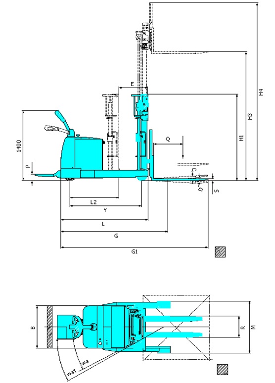 | Overall length (mast no reach)(整車(chē)長(zhǎng)度)(門(mén)架沒(méi)前移含貨叉) | G | mm | 2020 | 2220 | 2320 | |