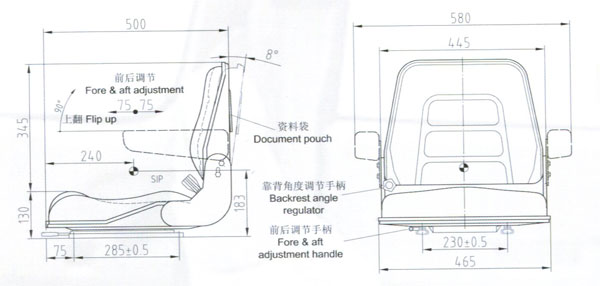 座椅為叉車及其它工業(yè)車輛設計的經(jīng)濟型駕駛員座椅。它沒有懸浮裝置。但其座背、靠背均采用真空發(fā)泡一次成型技術,便于拆換。