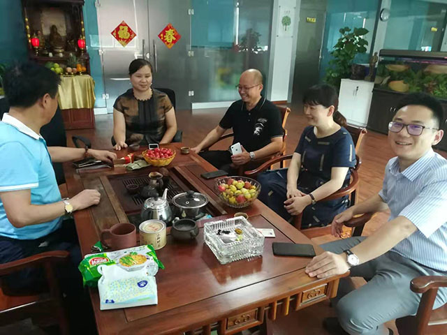 2019年7月24日下午,福建省安徽商會輪值會長方琴女士、秘書長薛薦先生帶領(lǐng)部分企業(yè)會員蒞臨我司參觀交流,受到我司創(chuàng)始人潘玉林先生的熱情接待。