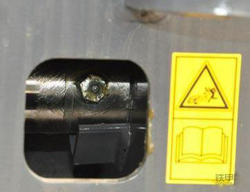 4. 使用扳手或是套筒,將履帶注油黃油嘴拆下,用挖掘機鏟斗撐起履帶脫落一側轉動履帶,黃油會跟著擠出,驅(qū)動輪往回縮。