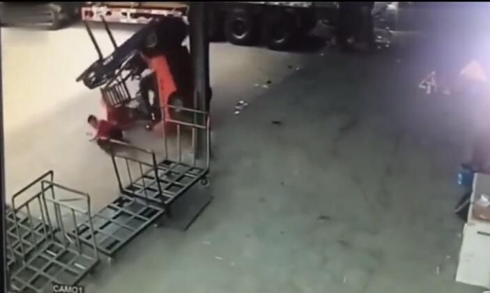 這還沒上去開幾步,倒車沒注意臺階直接導(dǎo)致叉車翻了個大跟頭,幸好人沒事,只是這叉車估計問題大了。